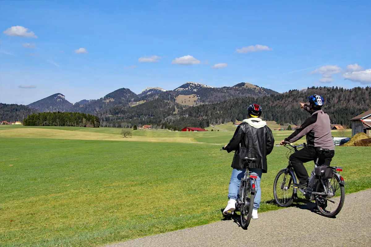Möchten Sie Höhe gewinnen, ohne (zu sehr) ins Schwitzen zu geraten? Ab dem Freizeitpark La Robella entdecken Sie zwei eindrucksvolle Strecken mit dem E-Bike (oder auch ohne!). Ob Sie nun Panoramablicke auf die Alpen geniessen oder lieber dem Lauf der Areuse bis zum Neuenburgersee folgen möchten – steigen Sie aufs E-Bike und lassen Sie sich von den Jurahöhen leiten. Haben Sie Ihr eigenes Velo dabei? Perfekt. Falls nicht: E-Bikes können direkt vor Ort gemietet werden – für eine entspannte Fahrt durch das Val-de-Travers.
