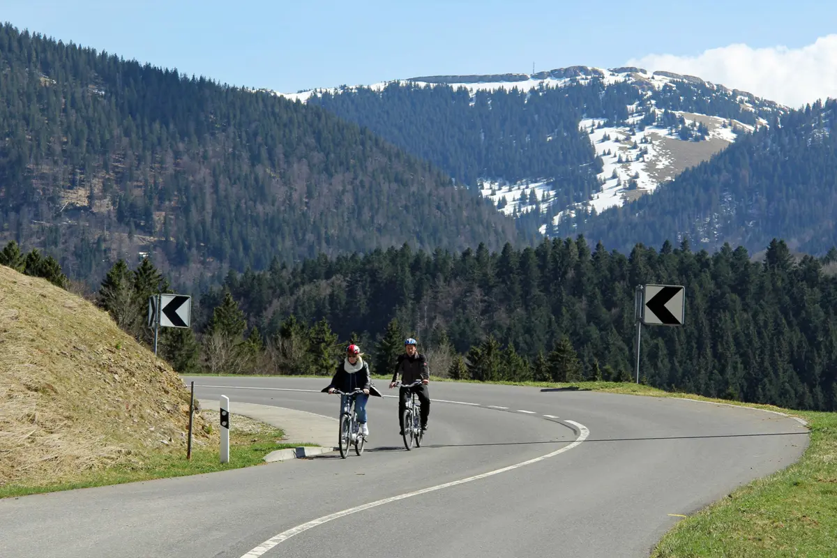 Berg oder Tal? Fels oder Wasser? Ab Buttes, im Herzen des Val-de-Travers, stehen Ihnen mehrere Routen offen. Die eine schlängelt sich rund um den Chasseron, die andere folgt dem Lauf der Areuse bis zu den Ufern des Neuenburgersees. Dank elektrischer Unterstützung werden diese beiden Rundstrecken von ca. 40 km auch für Gelegenheitsradler zugänglich.